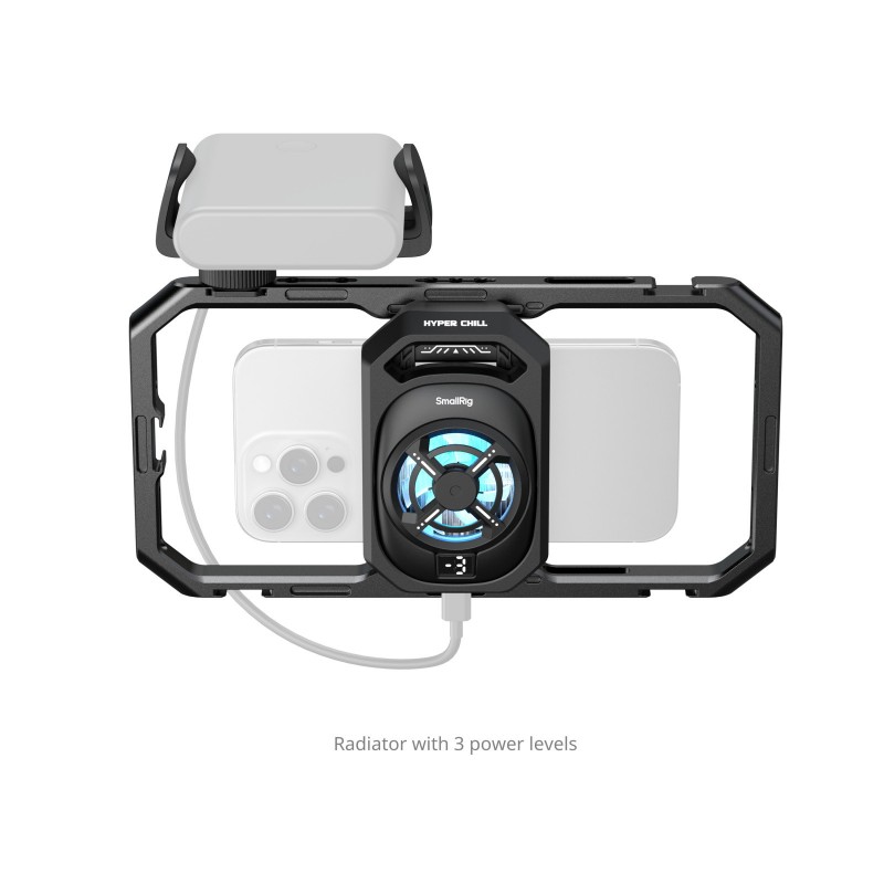 Die universelle SmallRig Hyper Chill 5275 Kühlungs-Cage ist für mobile Content-Ersteller konzipiert, die optimale Leistung bei langen Aufnahmen oder Livestreams verlangen. Dank ihres leistungsstarken aktiven Kühlsystems verhindert sie effektiv die Überhitzung Ihres Smartphones, wodurch unerwartete Unterbrechungen und Qualitätsverluste bei intensiven Sessions vermieden werden. Ihr 2-in-1 USB-C-Adapter ermöglicht das Aufladen Ihres Geräts bei gleichzeitiger Audio-Eingabe, während die integrierte Powerbank-Halterung eine konstante Stromversorgung gewährleistet.