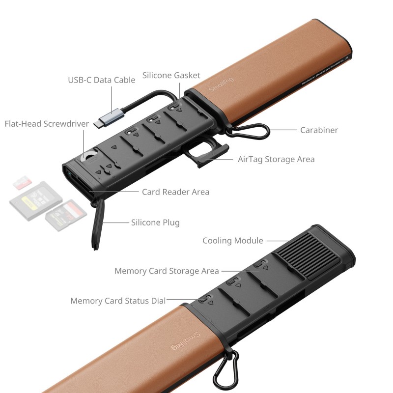 Optimieren Sie das Management und die Sicherheit Ihrer Speicherkarten mit diesem multifunktionalen SmallRig Kartenleser. Entwickelt für professionelle Kreative, kombiniert er hohe Übertragungsgeschwindigkeiten, sichere Speicherkapazität und außergewöhnliche Portabilität. Sein robustes Gehäuse schützt Ihre Karten bei allen Ihren Reisen, während seine fortschrittlichen Funktionen schnelle und zuverlässige Übertragungen gewährleisten.