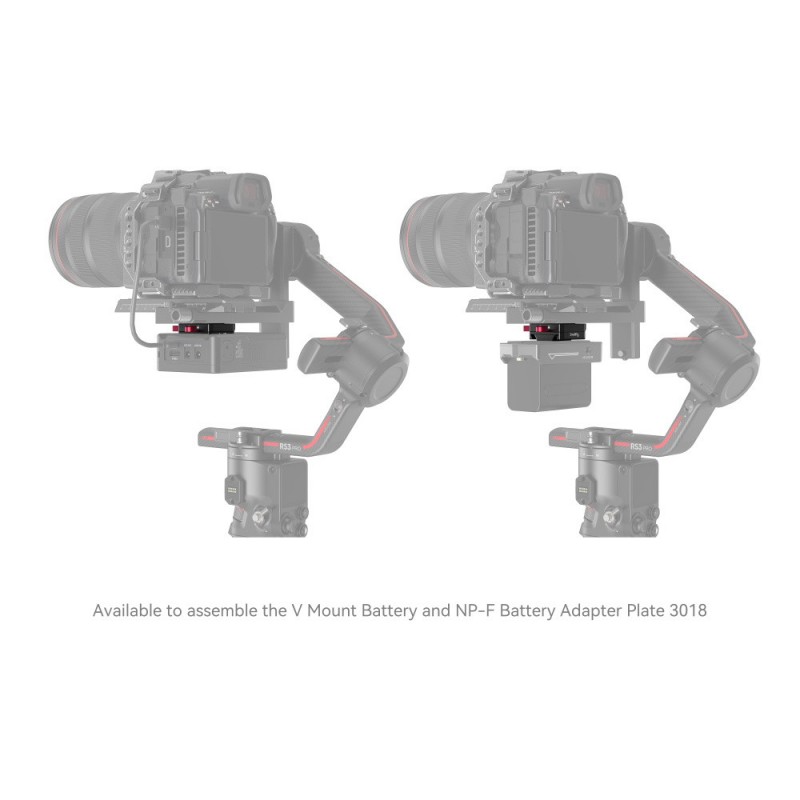 Entworfen, um nahtlos unter Ihr Gimbal zu passen, ermöglicht sie den Anschluss von V-Mount Batterien wie die Modelle VB50 (3579) und VB99 (3850) oder einer SmallRig NP-F Batteriadapterplatte (3018), um maximale Flexibilität bei verlängerten Aufnahmen zu gewährleisten.