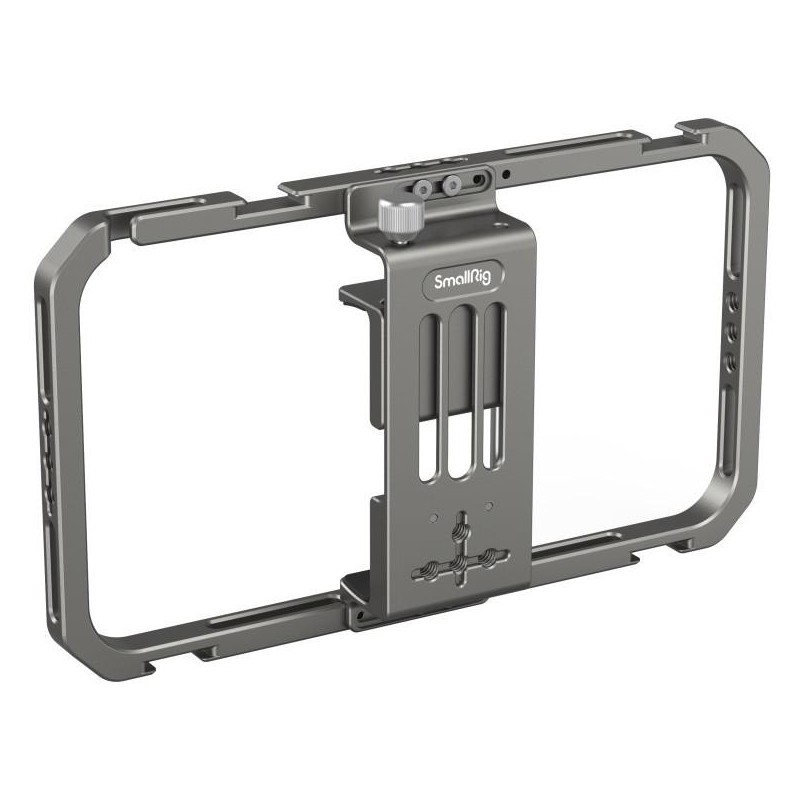 Dank seines Schraubzwingensystems gewährleistet er eine stabile und zuverlässige Befestigung, die sich an die meisten Smartphones auf dem Markt anpasst, mit oder ohne Hülle. Ausgestattet mit mehreren Montagemöglichkeiten, ermöglicht es das einfache Hinzufügen von wichtigen Zubehörteilen wie einem Mikrofon, einer LED-Lampe oder einem zusätzlichen Griff.