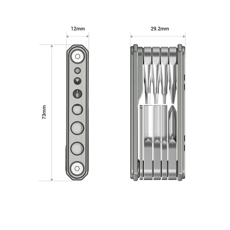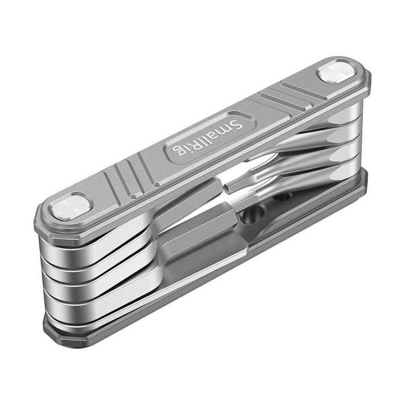Das SmallRig Universelle 9-in-1 Faltmultiwerkzeug-Kit ist der ideale Begleiter für anspruchsvolle Fotografen und Videofilmer. Entwickelt, um eine kompakte und vollständige Lösung zu bieten, vereint dieses Kit neun essentielle Werkzeuge für die Wartung, Montage und schnelle Anpassung Ihrer Ausrüstung im Feld. Seine Herstellung aus Edelstahl und Aluminiumlegierung garantiert Langlebigkeit und Leichtigkeit, während die Gewindebohrungen dazu dienen, Schrauben griffbereit für effektives und organisiertes Arbeiten zu halten.