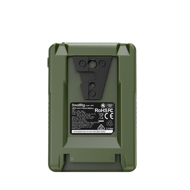 Die SmallRig VB99 mini V Mount Battery (Grün) ist eine kompakte V-Mount-Batterie, die entwickelt wurde, um den Anforderungen von anspruchsvollen Fotografen und Videofilmern unterwegs gerecht zu werden.