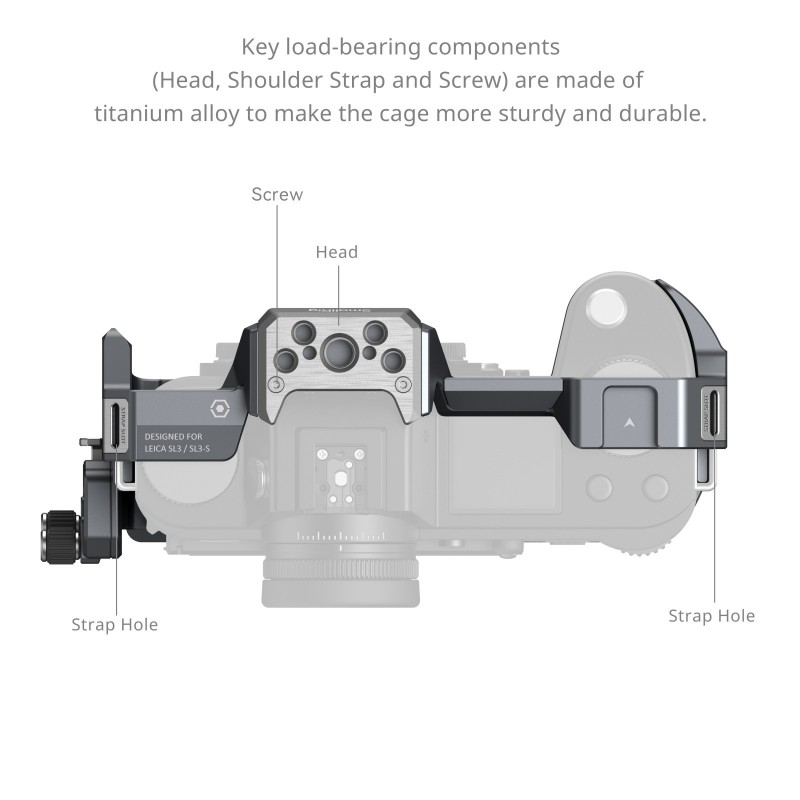 Découvrez la cage SmallRig conçue spécialement pour les Leica SL3 et SL3-S, pensée pour offrir une protection optimale à votre appareil photo tout en élargissant vos possibilités créatives. Grâce à sa structure robuste en alliage de titane et d’aluminium, cette cage allie légèreté, solidité et élégance. La fixation en trois points assure une stabilité parfaite, tandis que les patins en silicone protègent votre boîtier des rayures. Personnalisez votre configuration et accédez facilement à toutes les interfaces et commandes de votre appareil.
