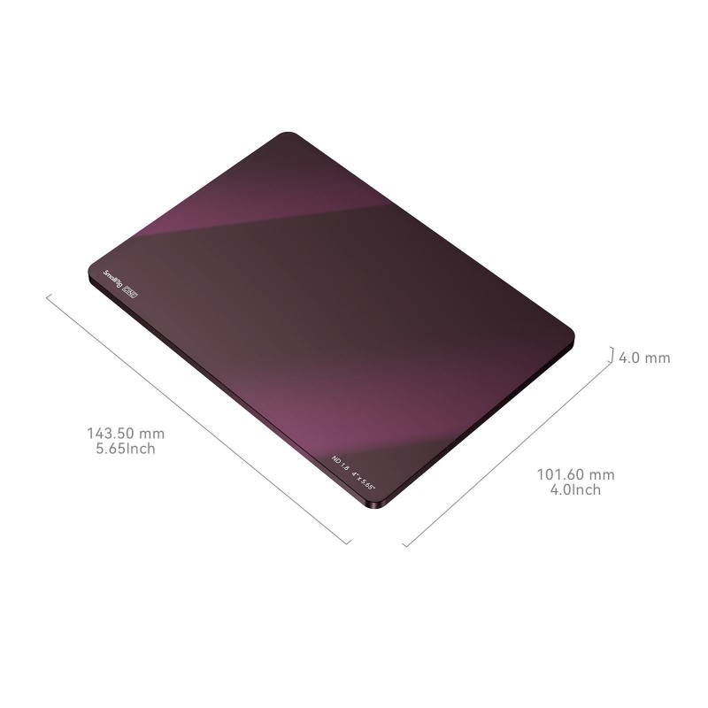 Le filtre ND1.8 SmallRig CINE 4 x 5.65" (6 stops) est conçu pour les cinéastes et photographes professionnels à la recherche d'un contrôle précis de la lumière, tout en garantissant une qualité d’image exceptionnelle. Grâce à sa fabrication en verre optique B270 de haute transmission, ce filtre réduit la lumière de 6 stops, permettant des effets créatifs comme un flou d’arrière-plan accentué ou une gestion optimale de la profondeur de champ, même en plein soleil.