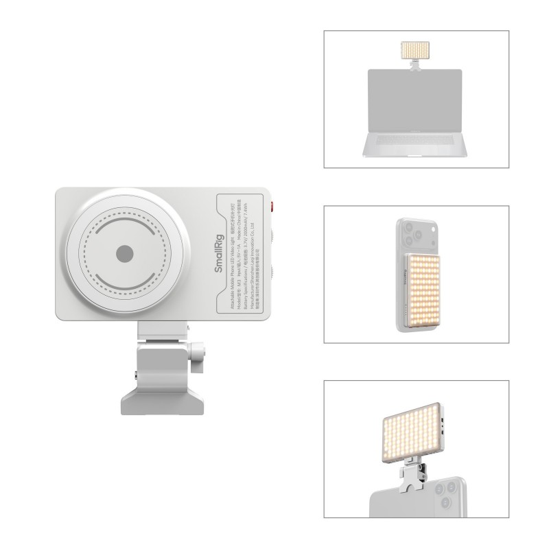 La lampe vidéo LED SmallRig M3 est l'accessoire incontournable pour les créateurs de contenus mobiles, photographes amateurs et professionnels en visioconférence. Grâce à sa compatibilité MagSafe, elle s’attache instantanément à l’iPhone ou à tout smartphone Android avec l’anneau métallique fourni. Son design ultra-fin (11 mm) et léger (87 g) assure une portabilité maximale, tandis que la base à dégagement rapide permet une installation horizontale ou verticale sur moniteur ou ordinateur portable avec un angle d’inclinaison de 170°.